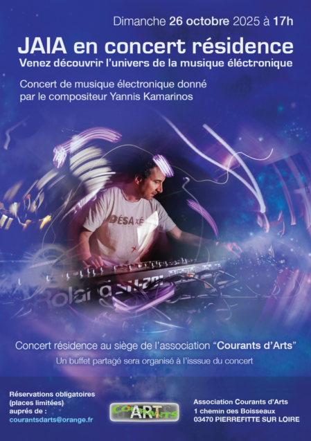 Libre participation. Le concert sera suivi d'un buffet partagé. Réservation obligatoire, en répondant à ce mail ( courantsdarts@orange.fr ), pour nous permettre de vous accueillir dans les meilleures conditions (attention : nombre de places limité à 50 environ).